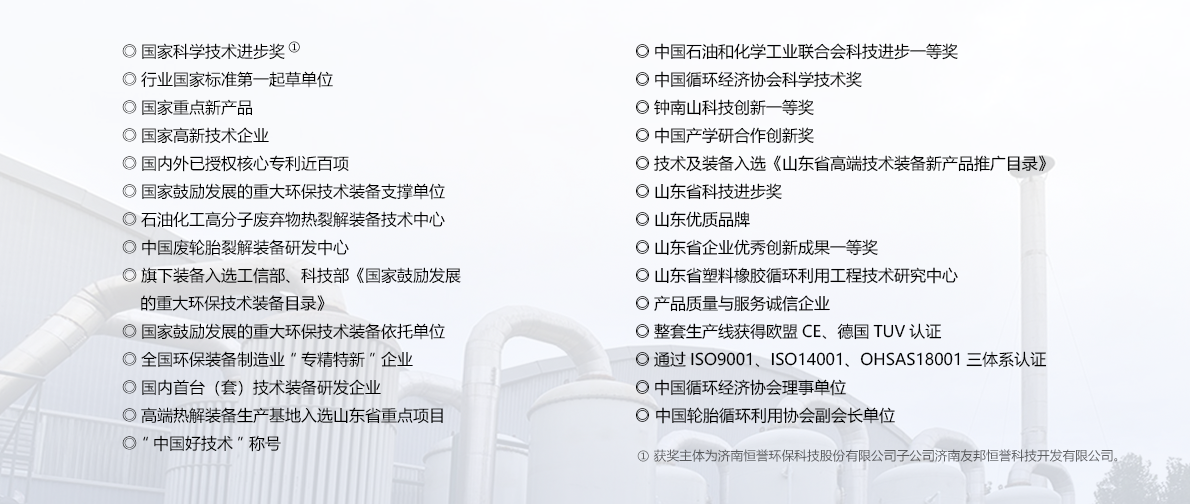 (①獲獎主體為濟(jì)南恒譽(yù)環(huán)??萍脊煞萦邢薰咀庸緷?jì)南友邦恒譽(yù)科技開發(fā)有限公司 )