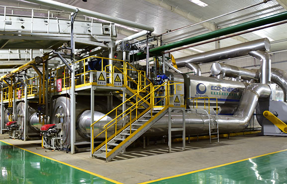 生產(chǎn)所需熱能完全由油泥殘?jiān)鼰峤猱a(chǎn)生的不凝可燃?xì)饣蛉剂嫌吞峁也捎糜酂嵫h(huán)供熱方式,大大節(jié)省了能源消耗,降低了生產(chǎn)線運(yùn)行成本